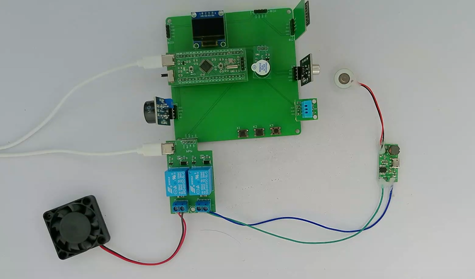 3、通过MS1100模块检测甲醛值,当甲醛值大于设置最大值时开启风扇和净化器,同时进行声光报警提醒