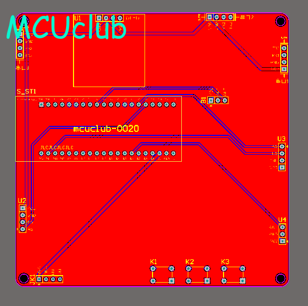 注意:PCB图中间有一个项目编号,隐藏在单片机底座下,插入单片机后不会看到。如果想截没有项目编号的PCB图,可在PCB源文件中点击删除。另外,如果想在实物PCB板上加自己的信息(比如日期、学号、姓名等),可联系客服。