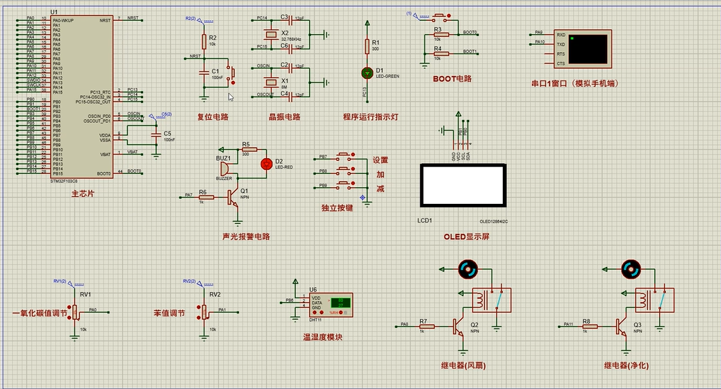 注意:部分实物元器件仿真中没有,仿真中会用其他工作原理相似的元件代替,这样可能导致实物程序和仿真程序不一样