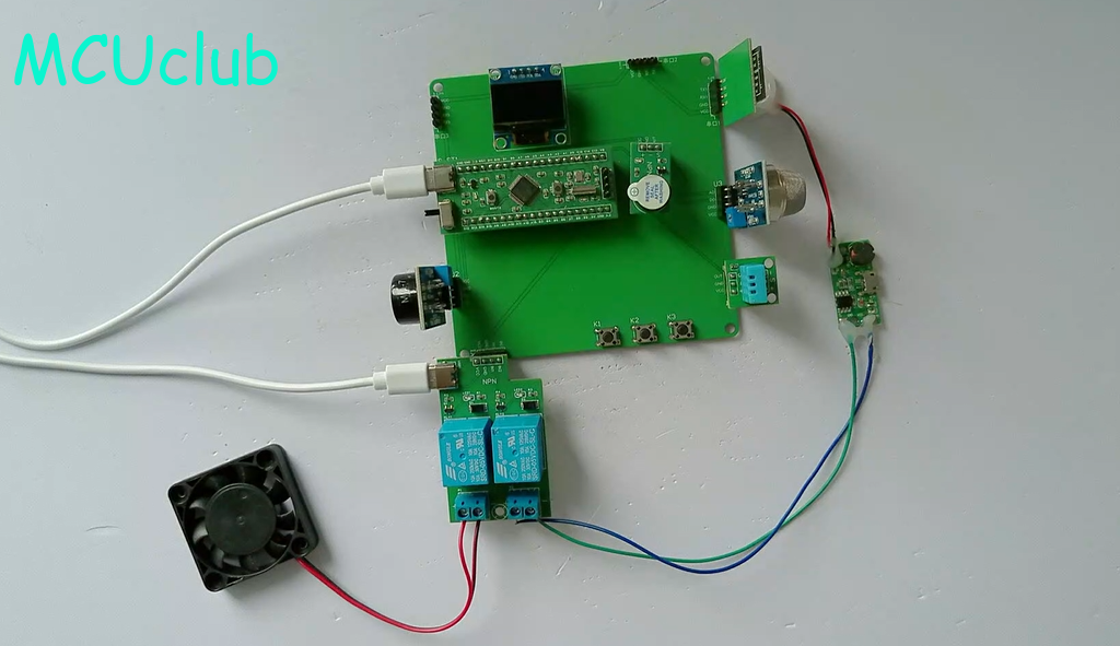 2、通过MQ-7模块检测CO值,当CO值大于设置最大值时开启风扇和净化器,同时进行声光报警提醒