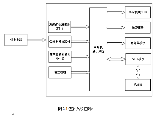 4、通过按键设置温湿度上下限值、CO及苯气体最大值,另外,当CO值小于等于设置最大值并且苯气体值小于等于设置最大值时,可手动控制风扇或净化器开关
