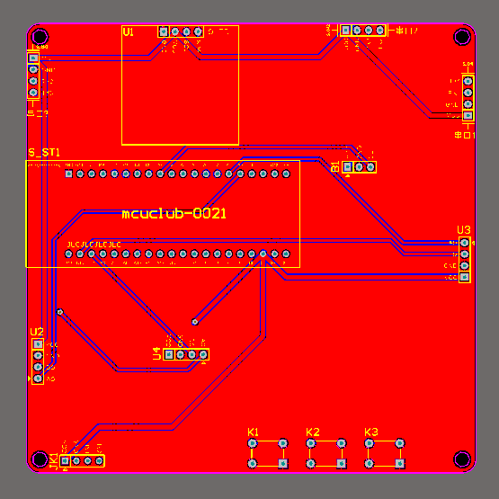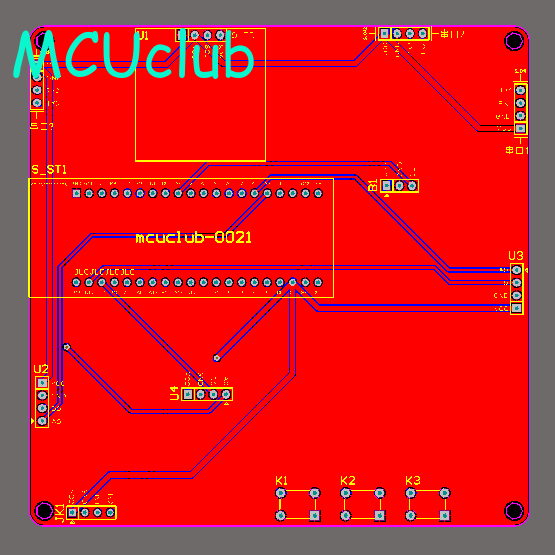 注意:PCB图中间有一个项目编号,隐藏在单片机底座下,插入单片机后不会看到。如果想截没有项目编号的PCB图,可在PCB源文件中点击删除。另外,如果想在实物PCB板上加自己的信息(比如日期、学号、姓名等),可联系客服。