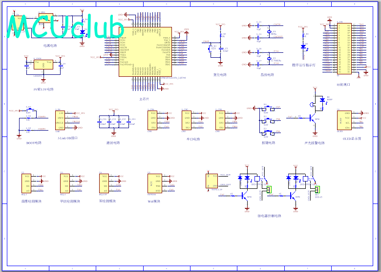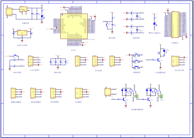 PCB图是由原理图导出,封装很大一部分都是作者自己绘制,不提供封装库,只提供连接好的源文件,可以直接在嘉立创进行打板。两层板,上下覆铜接地。