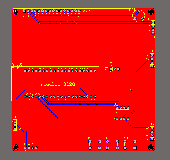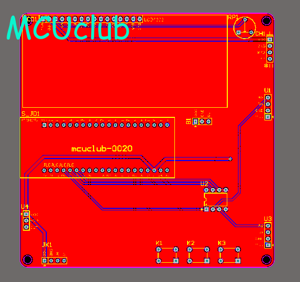 注意:PCB图中间有一个项目编号,隐藏在单片机底座下,插入单片机后不会看到。如果想截没有项目编号的PCB图,可在PCB源文件中点击删除。另外,如果想在实物PCB板上加自己的信息(比如日期、学号、姓名等),可联系客服。