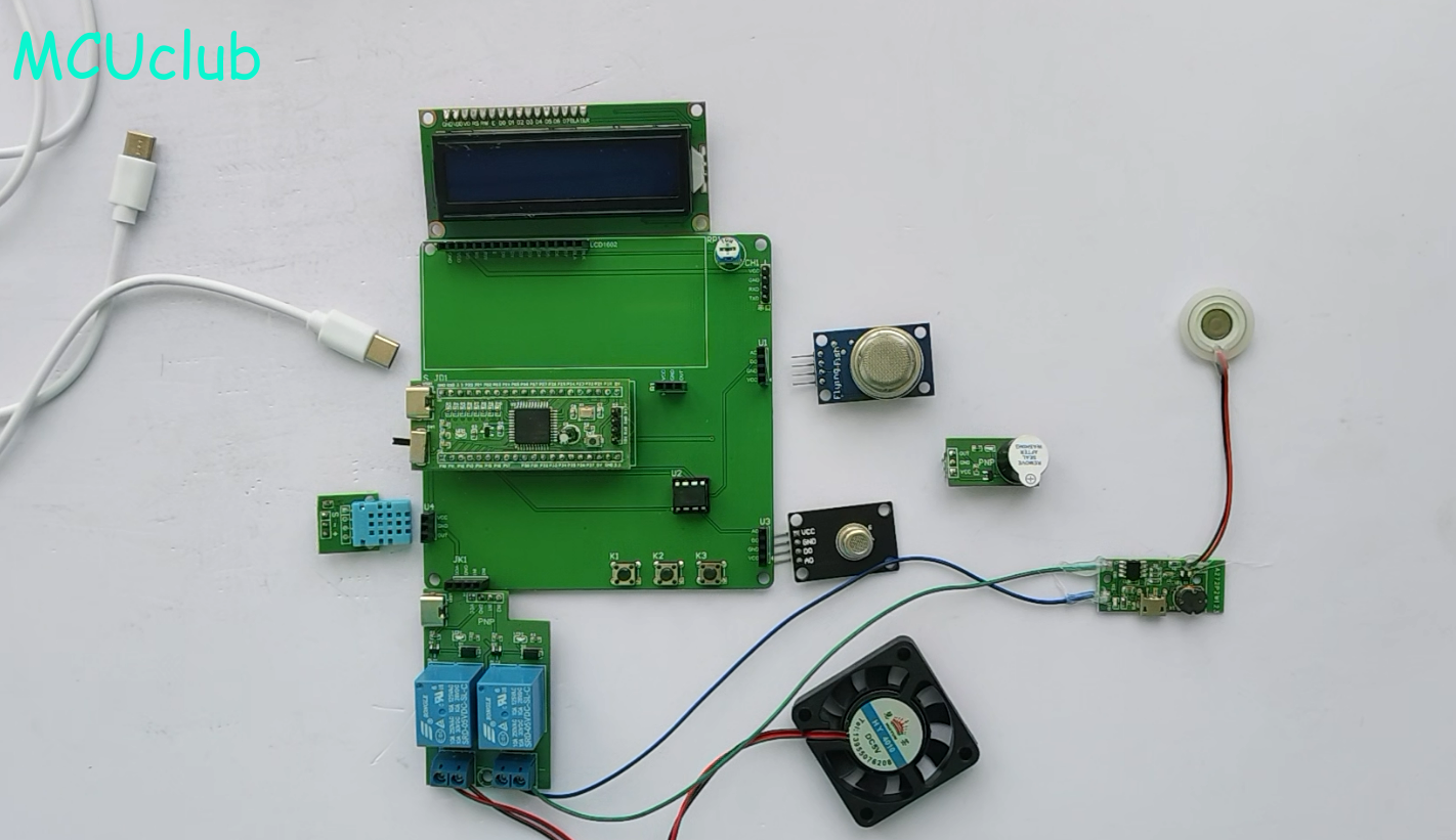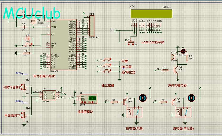 3、通过MS1100模块检测甲醛值,当甲醛值大于设置最大值时开启风扇和净化器,同时进行声光报警提醒