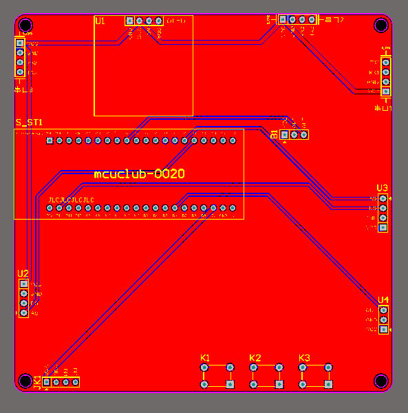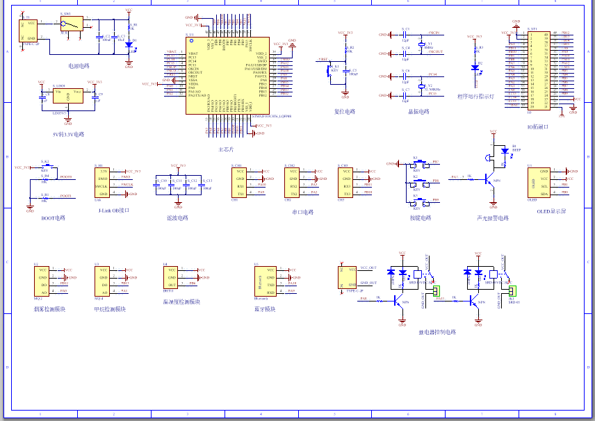PCB图是由原理图导出,封装很大一部分都是作者自己绘制,不提供封装库,只提供连接好的源文件,可以直接在嘉立创进行打板。两层板,上下覆铜接地。