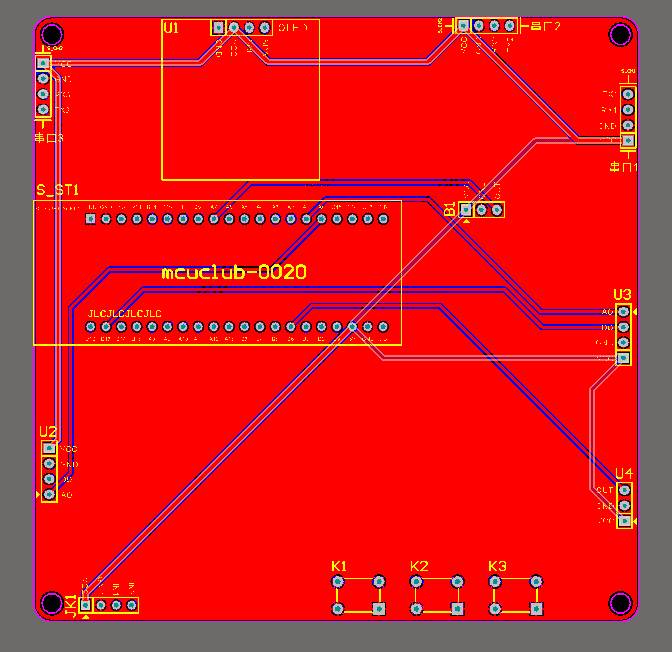 注意:PCB图中间有一个项目编号,隐藏在单片机底座下,插入单片机后不会看到。如果想截没有项目编号的PCB图,可在PCB源文件中点击删除。另外,如果想在实物PCB板上加自己的信息(比如日期、学号、姓名等),可联系客服。