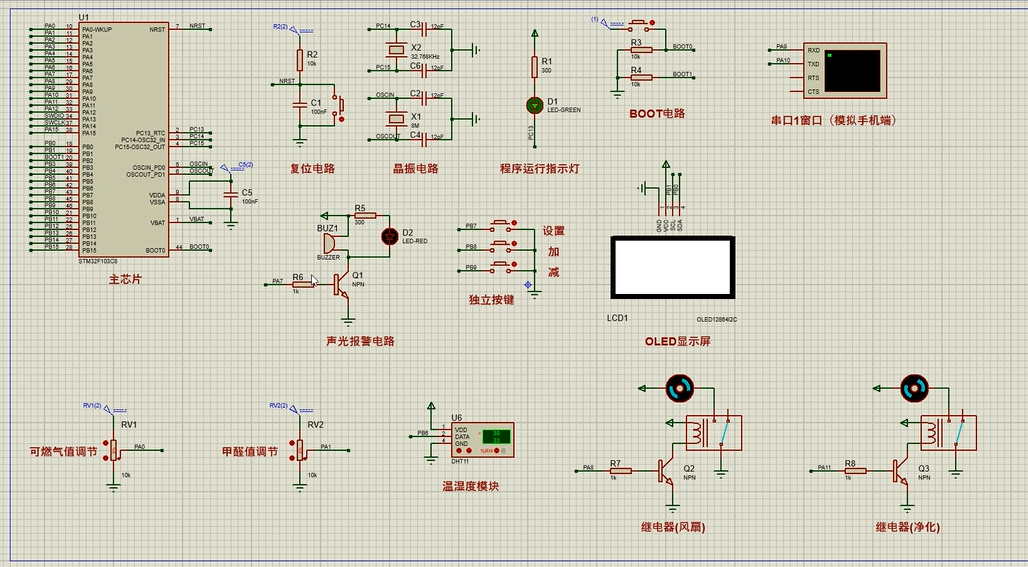注意:部分实物元器件仿真中没有,仿真中会用其他工作原理相似的元件代替,这样可能导致实物程序和仿真程序不一样