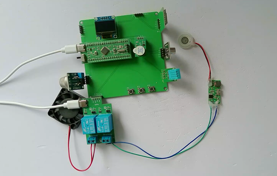 3、通过MS1100模块检测甲醛值,当甲醛值大于设置最大值时开启风扇和净化器,同时进行声光报警提醒