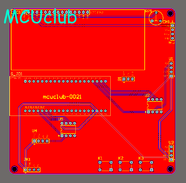 注意:PCB图中间有一个项目编号,隐藏在单片机底座下,插入单片机后不会看到。如果想截没有项目编号的PCB图,可在PCB源文件中点击删除。另外,如果想在实物PCB板上加自己的信息(比如日期、学号、姓名等),可联系客服。