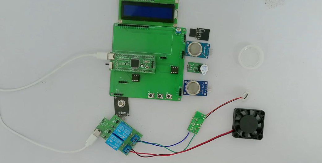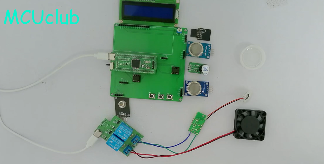 1、通过MQ-2模块检测烟雾值,当烟雾值大于设置最大值时开启风扇和净化器,同时进行声光报警提醒