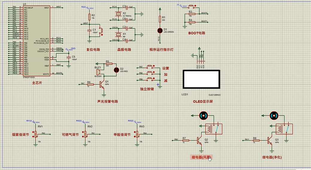 注意:部分实物元器件仿真中没有,仿真中会用其他工作原理相似的元件代替,这样可能导致实物程序和仿真程序不一样