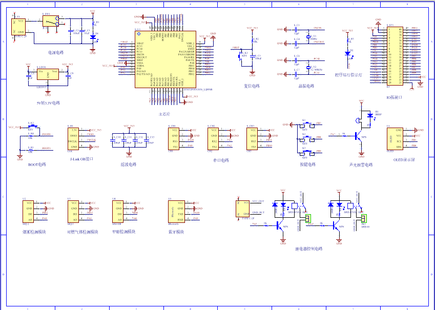 PCB图是由原理图导出,封装很大一部分都是作者自己绘制,不提供封装库,只提供连接好的源文件,可以直接在嘉立创进行打板。两层板,上下覆铜接地。
