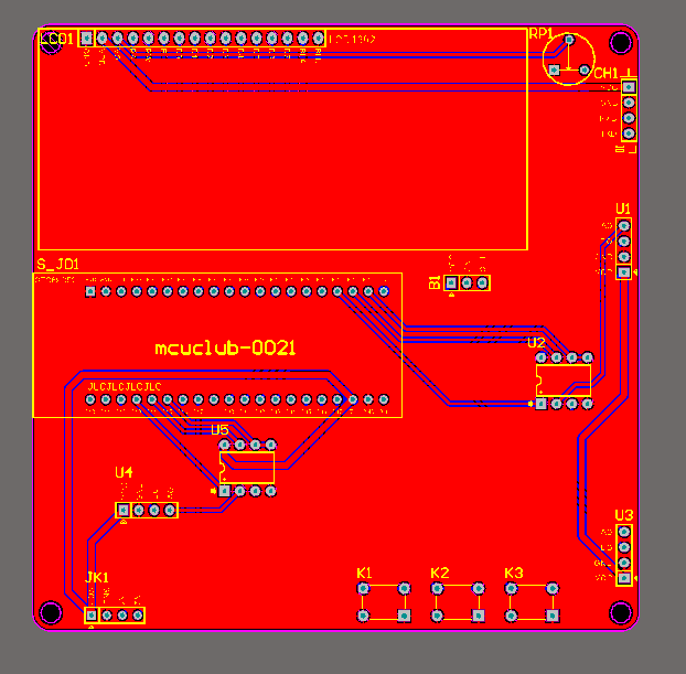 PCB图是由原理图导出,封装很大一部分都是作者自己绘制,不提供封装库,只提供连接好的源文件,可以直接在嘉立创进行打板。两层板,上下覆铜接地。