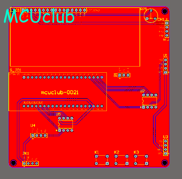 注意:PCB图中间有一个项目编号,隐藏在单片机底座下,插入单片机后不会看到。如果想截没有项目编号的PCB图,可在PCB源文件中点击删除。另外,如果想在实物PCB板上加自己的信息(比如日期、学号、姓名等),可联系客服。