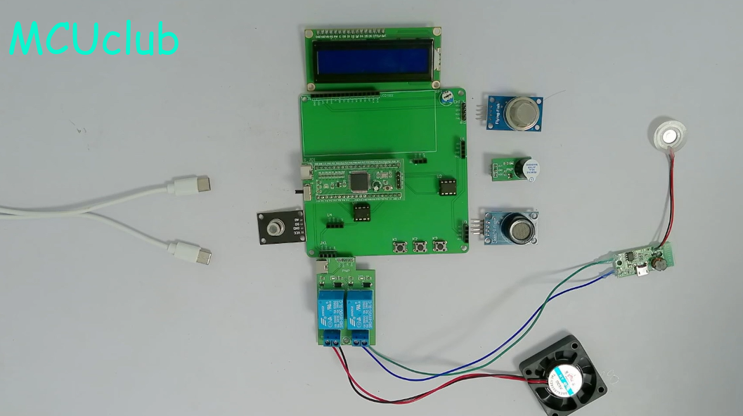 1、通过MQ-2模块检测烟雾值,当烟雾值大于设置最大值时开启风扇和净化器,同时进行声光报警提醒