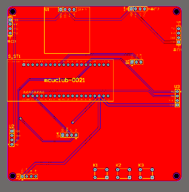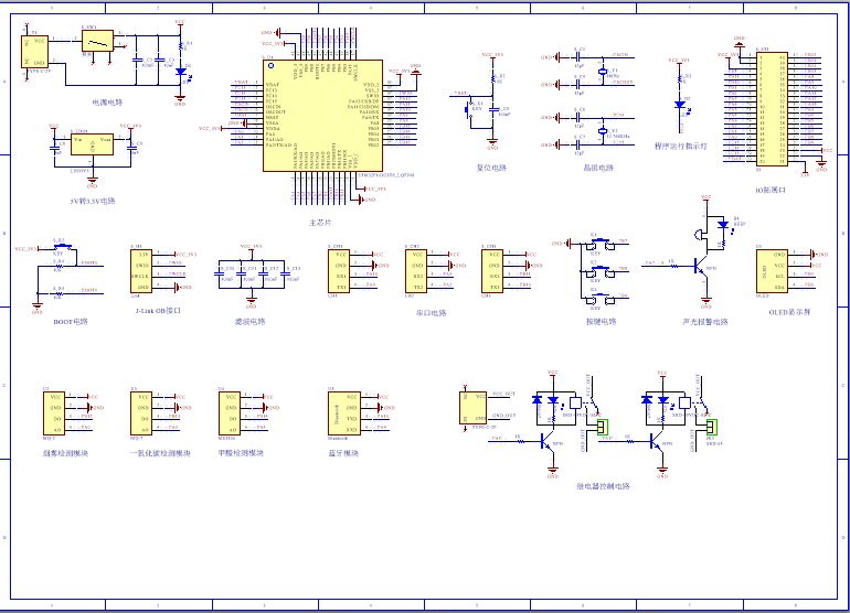 PCB图是由原理图导出,封装很大一部分都是作者自己绘制,不提供封装库,只提供连接好的源文件,可以直接在嘉立创进行打板。两层板,上下覆铜接地。