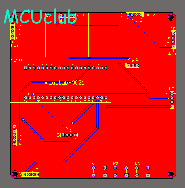 注意:PCB图中间有一个项目编号,隐藏在单片机底座下,插入单片机后不会看到。如果想截没有项目编号的PCB图,可在PCB源文件中点击删除。另外,如果想在实物PCB板上加自己的信息(比如日期、学号、姓名等),可联系客服。