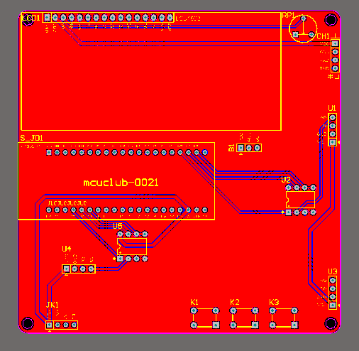 注意:PCB图中间有一个项目编号,隐藏在单片机底座下,插入单片机后不会看到。如果想截没有项目编号的PCB图,可在PCB源文件中点击删除。另外,如果想在实物PCB板上加自己的信息(比如日期、学号、姓名等),可联系客服。