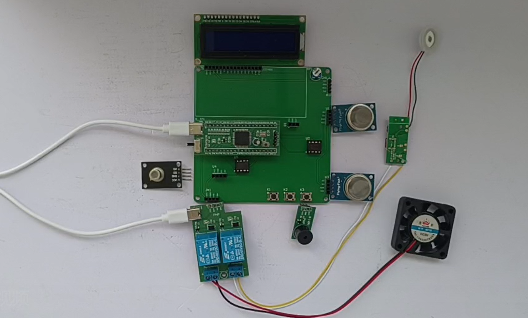 3、通过MS1100模块检测甲醛值,当甲醛值大于设置最大值时开启风扇和净化器,同时进行声光报警提醒