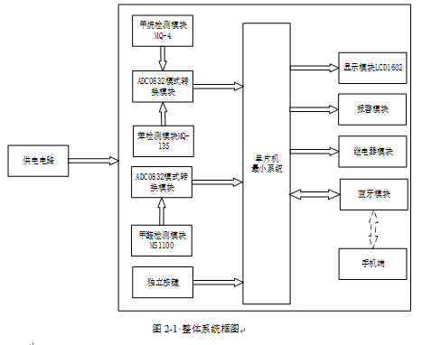 5、通过LCD1602显示屏显示数据 扩展功能:通过蓝牙模块将测量数据发送到手机端,手机端可设置甲烷、苯气体及甲醛最大值,另外,当甲烷值、苯气体值及甲醛值小于等于设置最大值时,可远程控制风扇或净化器开关