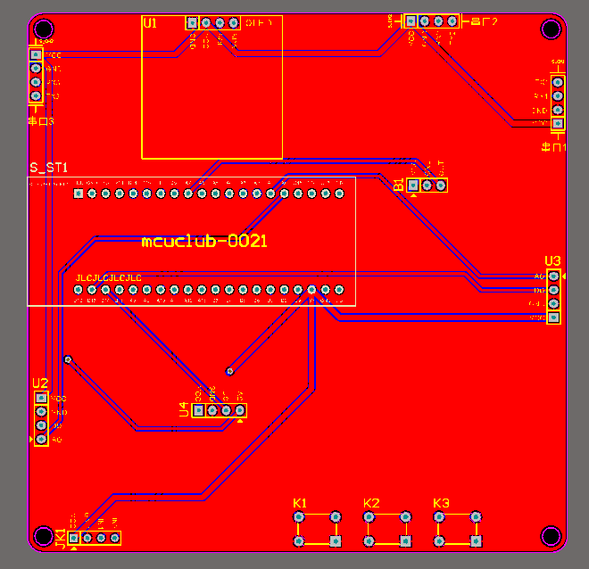 PCB图是由原理图导出,封装很大一部分都是作者自己绘制,不提供封装库,只提供连接好的源文件,可以直接在嘉立创进行打板。两层板,上下覆铜接地。