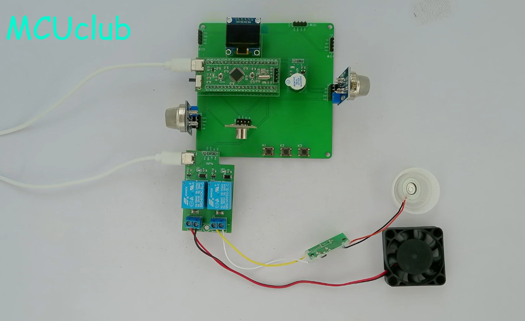 1、通过MQ-5模块检测可燃气体值,当可燃气体值大于设置最大值时开启风扇和净化器,同时进行声光报警提醒