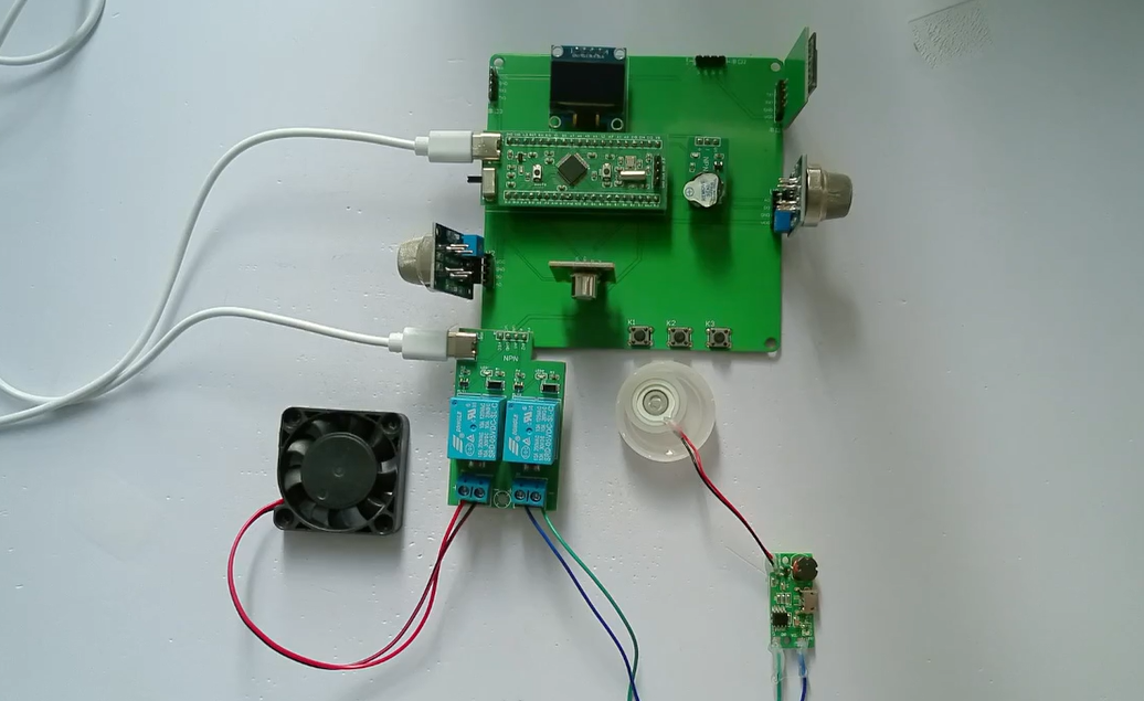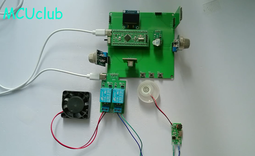 1、通过MQ-5模块检测可燃气体值,当可燃气体值大于设置最大值时开启风扇和净化器,同时进行声光报警提醒