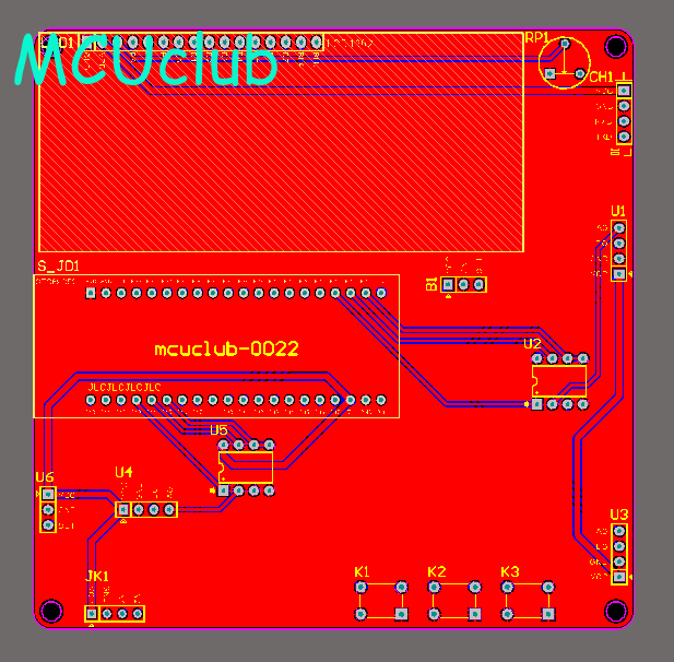 注意:PCB图中间有一个项目编号,隐藏在单片机底座下,插入单片机后不会看到。如果想截没有项目编号的PCB图,可在PCB源文件中点击删除。另外,如果想在实物PCB板上加自己的信息(比如日期、学号、姓名等),可联系客服。