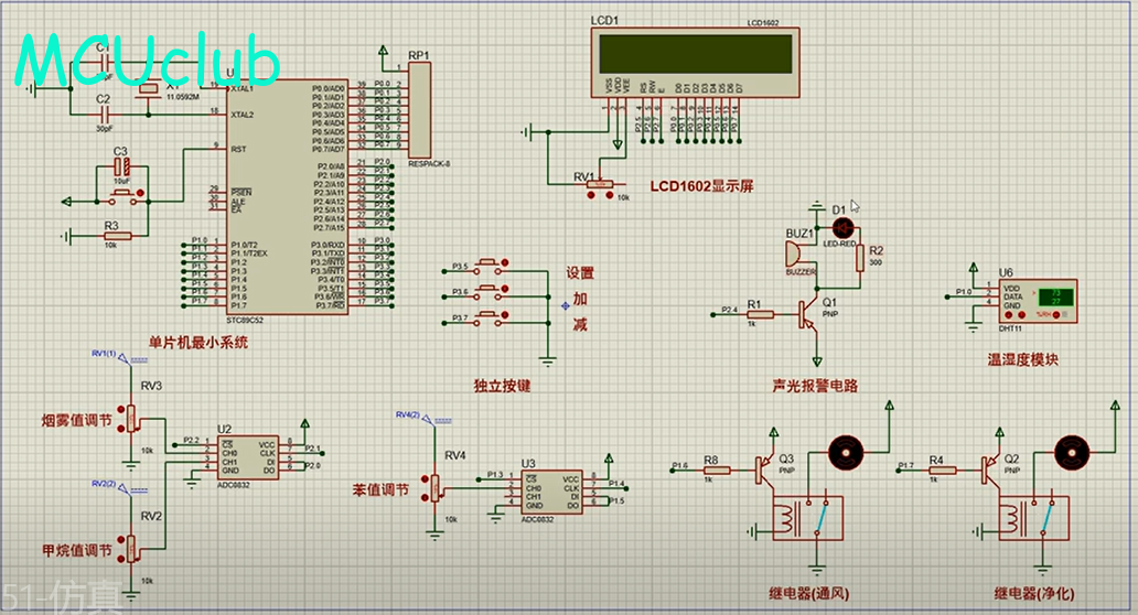 注意:部分实物元器件仿真中没有,仿真中会用其他工作原理相似的元件代替,这样可能导致实物程序和仿真程序不一样