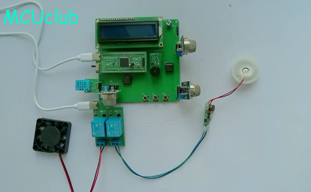2、通过MQ-2模块检测烟雾值,当烟雾值大于设置最大值时开启风扇和净化器,同时进行声光报警提醒