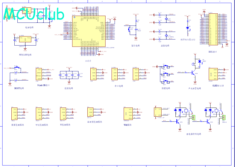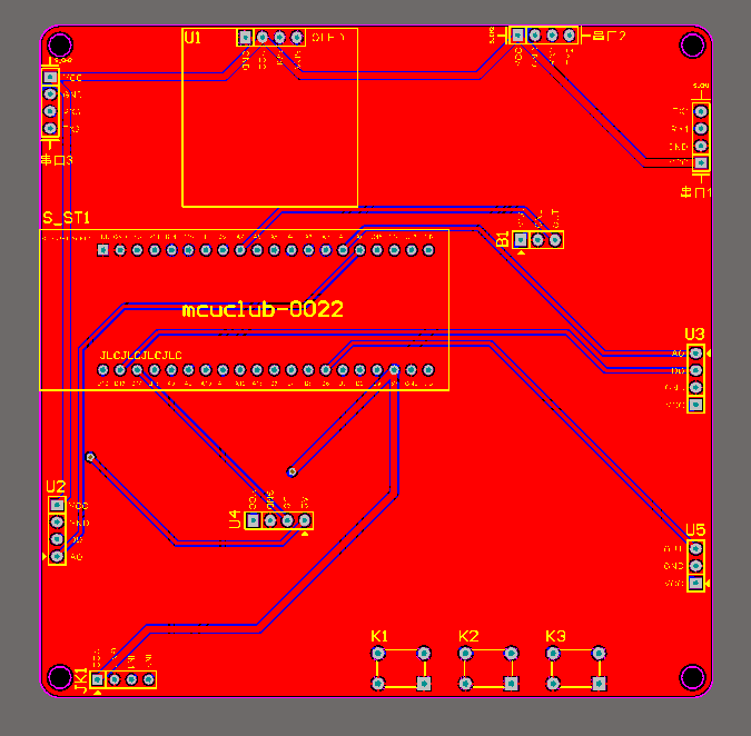 PCB图是由原理图导出,封装很大一部分都是作者自己绘制,不提供封装库,只提供连接好的源文件,可以直接在嘉立创进行打板。两层板,上下覆铜接地。