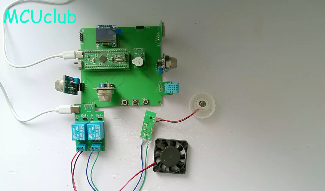 2、通过MQ-2模块检测烟雾值,当烟雾值大于设置最大值时开启风扇和净化器,同时进行声光报警提醒
