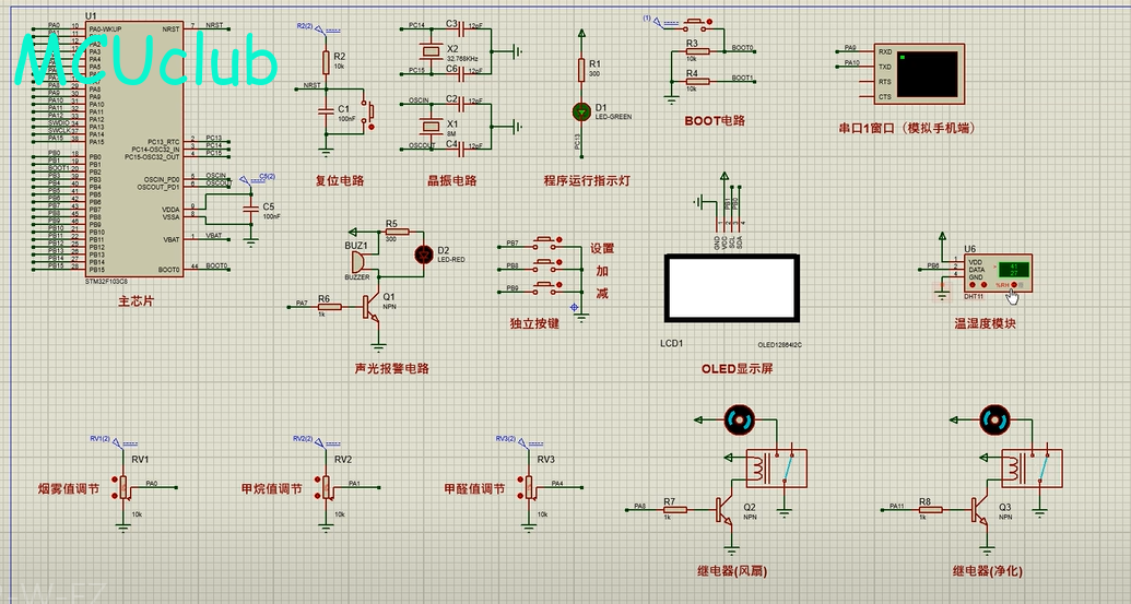 注意:部分实物元器件仿真中没有,仿真中会用其他工作原理相似的元件代替,这样可能导致实物程序和仿真程序不一样