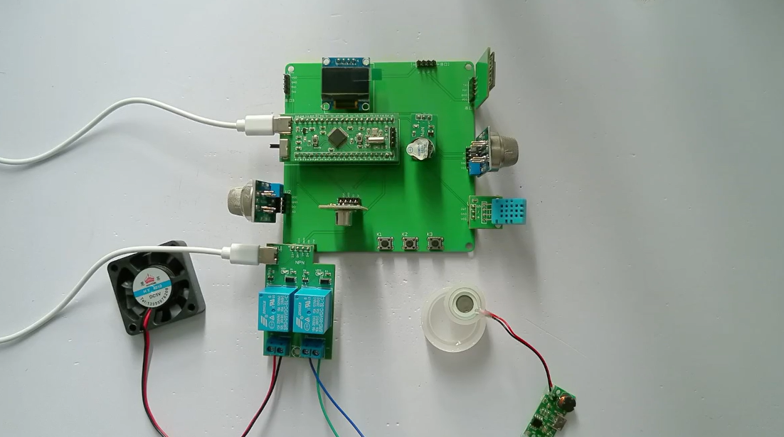 4、通过MS1100模块检测甲醛值,当甲醛值大于设置最大值时开启风扇和净化器,同时进行声光报警提醒