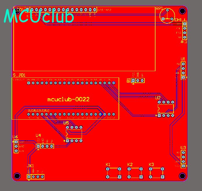 注意:PCB图中间有一个项目编号,隐藏在单片机底座下,插入单片机后不会看到。如果想截没有项目编号的PCB图,可在PCB源文件中点击删除。另外,如果想在实物PCB板上加自己的信息(比如日期、学号、姓名等),可联系客服。