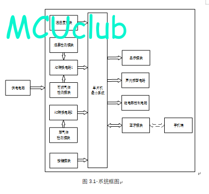 3、通过MQ-5模块检测可燃气体值,当可燃气体值大于设置最大值时开启风扇和净化器,同时进行声光报警提醒