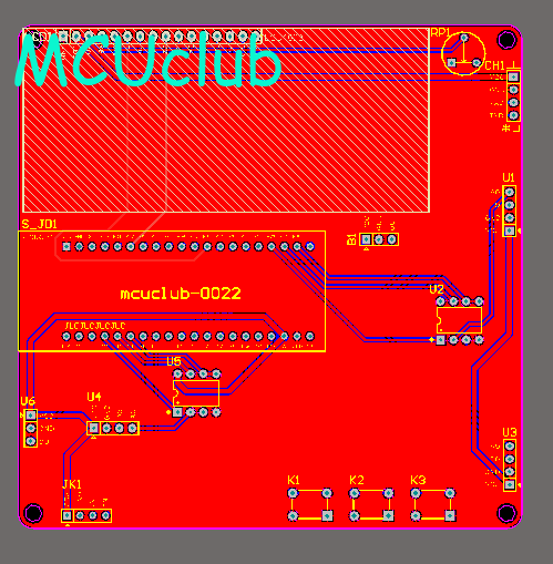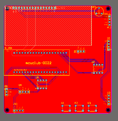 注意:PCB图中间有一个项目编号,隐藏在单片机底座下,插入单片机后不会看到。如果想截没有项目编号的PCB图,可在PCB源文件中点击删除。另外,如果想在实物PCB板上加自己的信息(比如日期、学号、姓名等),可联系客服。