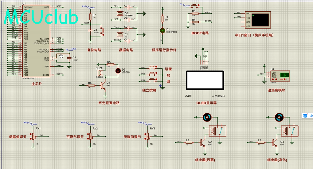 注意:部分实物元器件仿真中没有,仿真中会用其他工作原理相似的元件代替,这样可能导致实物程序和仿真程序不一样