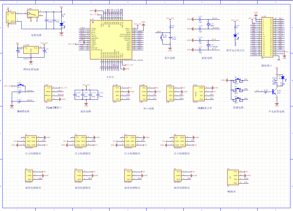 PCB图是由原理图导出,封装很大一部分都是作者自己绘制,不提供封装库,只提供连接好的源文件,可以直接在嘉立创进行打板。两层板,上下覆铜接地。