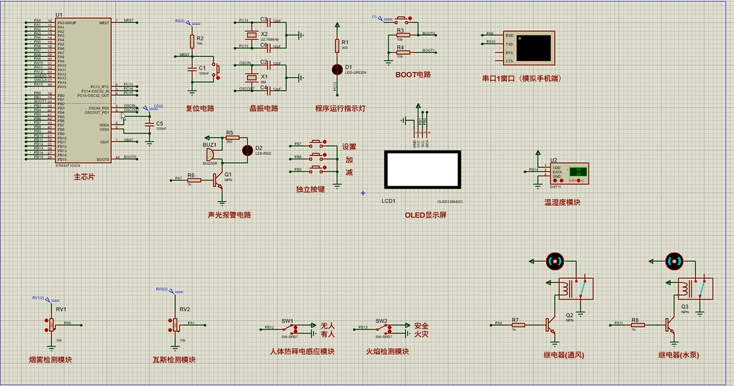 注意:部分实物元器件仿真中没有,仿真中会用其他工作原理相似的元件代替,这样可能导致实物程序和仿真程序不一样